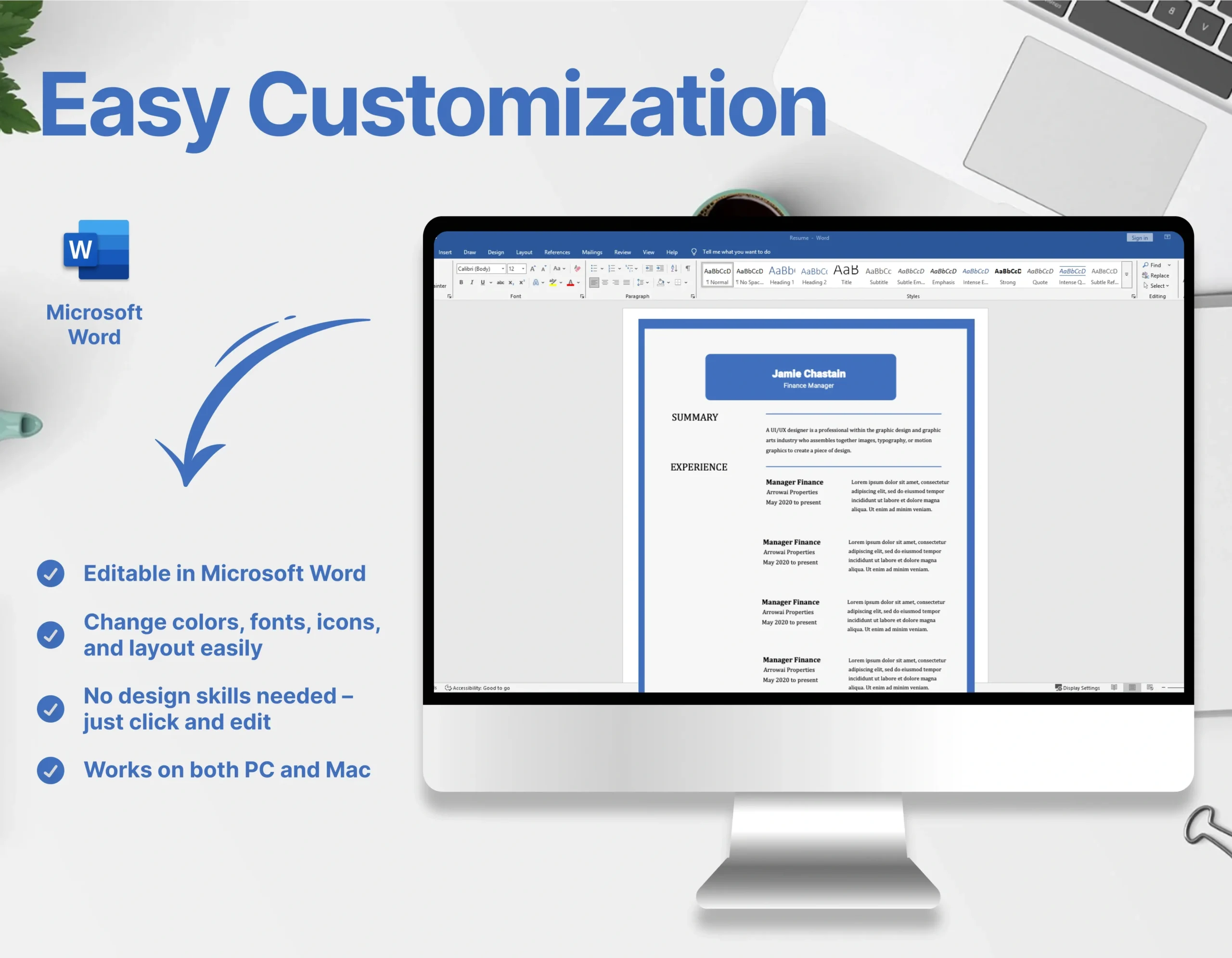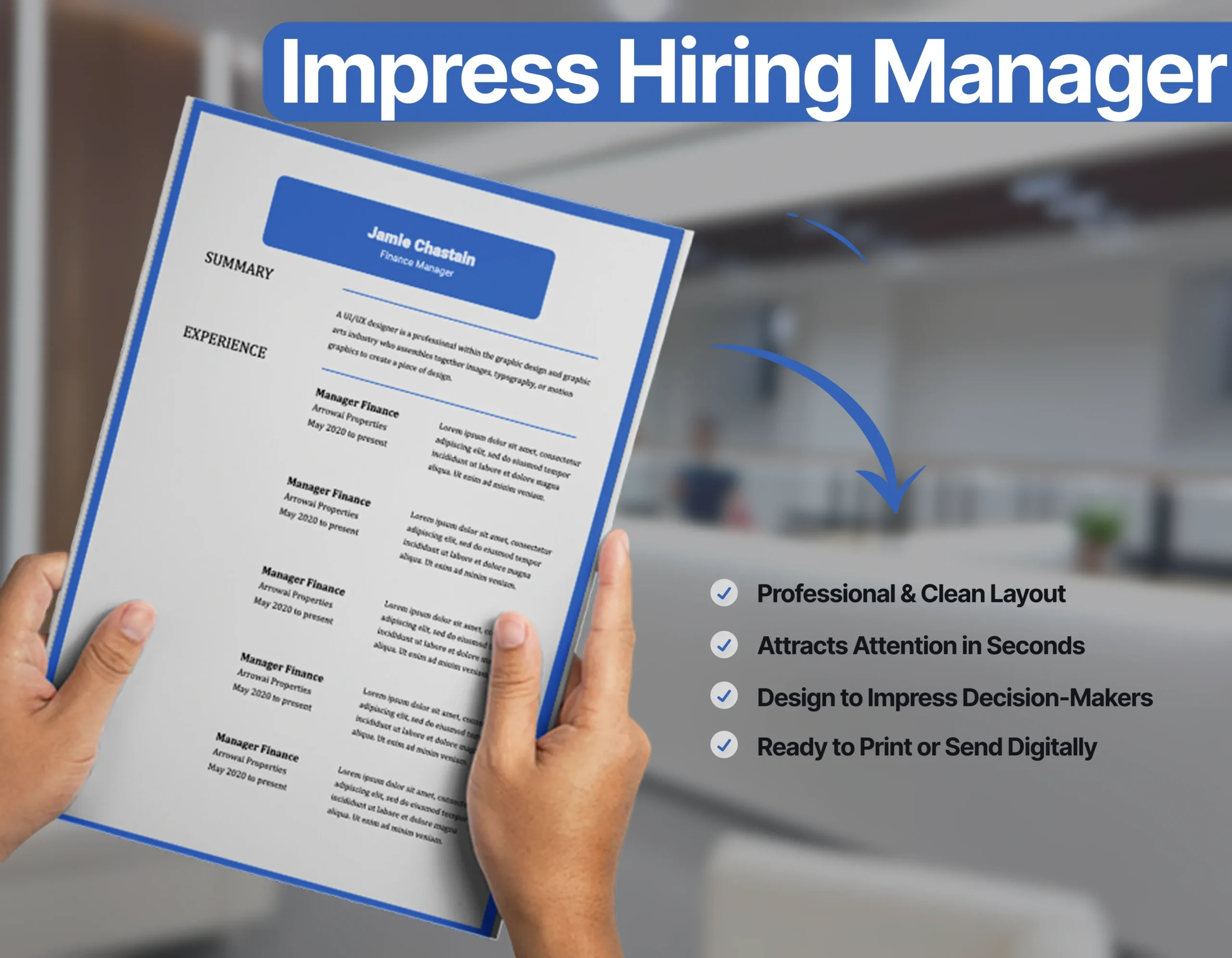 Designed in Microsoft Word (.docx) format, this template is fully editable, allowing you to tailor it to your specific accomplishments and industry focus.