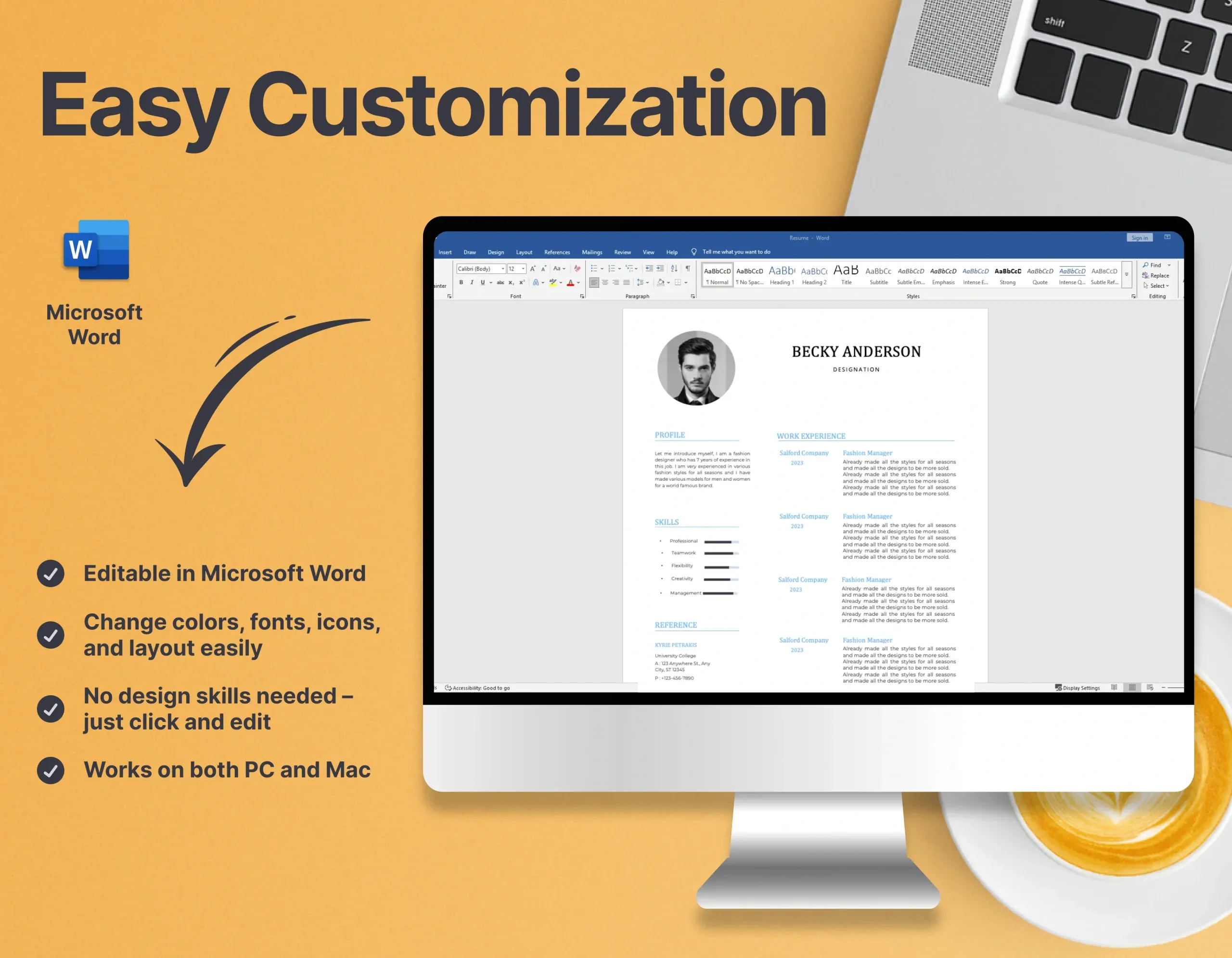 Designed in Microsoft Word (.docx) format, the template is fully editable, allowing quick and easy personalisation for your next job application.