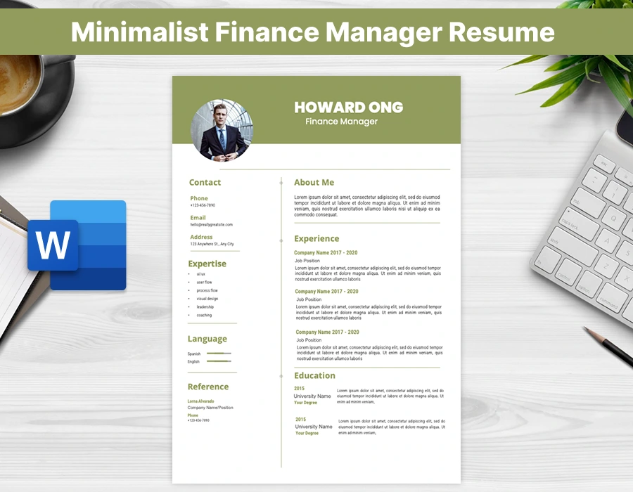 Present your financial expertise and leadership with clarity using this Minimalist Finance Manager Resume Template, designed for professionals who manage financial operations, budgeting, and strategic planning in a clean, professional format.