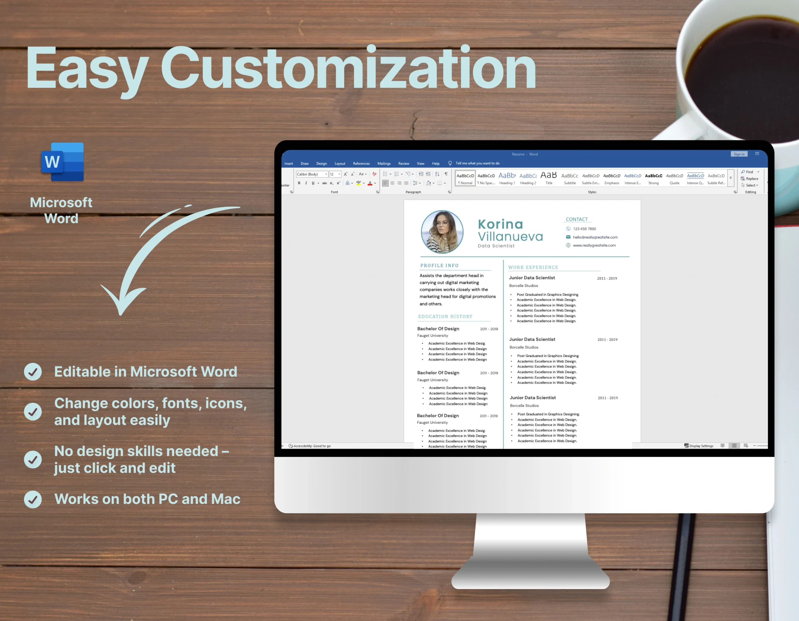 This editable Word resume (DOCX) gives you full control to tailor each section, from Python and R proficiency to your work with big data platforms, model development, data pipelines, and more. Whether you’re applying for roles in tech companies, startups, research institutions, or Fortune 500 firms, this downloadable resume for data scientists ensures your qualifications and experience stand out.