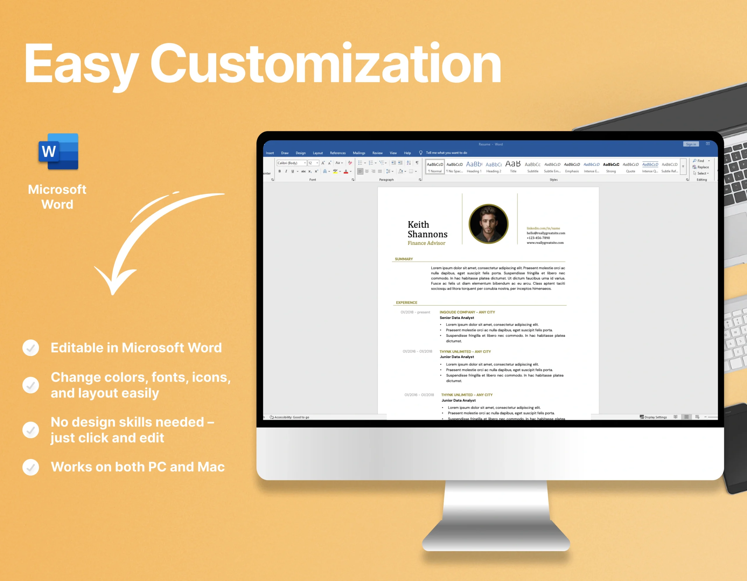 Designed in Microsoft Word (.docx) format, the resume is fully editable, allowing you to tailor it to your unique client base, whether you’re targeting private clients, corporate firms, or finance institutions. Its polished design helps you appear organised, trustworthy and results-driven — making it a perfect fit for global Job Markets.